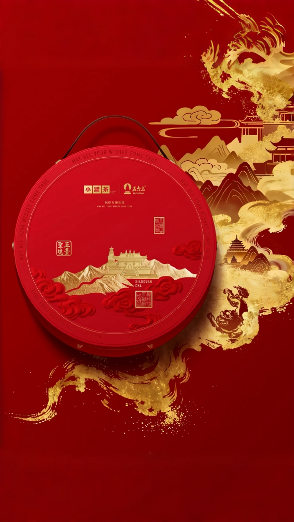 浮雕鎏金工艺,将五台山的巍峨气韵“印”于礼盒之上,指尖抚过,起伏间皆是禅意。三层圆盒的巧思,将茶饼与茶具安然分置,秩序井然。手提设计,让这份满载心意的山川,随处可往。
