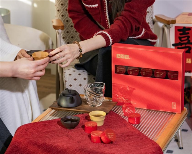开箱即是盛宴:红纸贴封的茶饼,自带仪式感的温度;搭配雅致的福禄茶具与精巧茶点,完美契合了这个充满“年味”的体验场景。