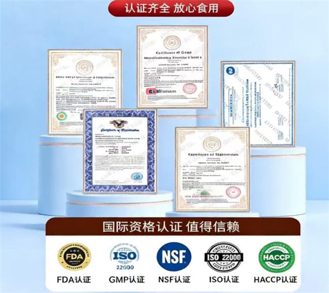 VOXXI水蛭素维血通通过了多项国际国内权威认证,包括FDA、cGMP、SGS、ISO9001、HACCP、ISO22000、NSF、FDAGRAS、中检院核验、蓝帽子认证,其中蓝帽子是国家保健食品认证,代表产品可辅助改善血脂、微循环,需明确说明的是,本品为保健食品,非药品,不能替代药物治疗。这些认证意味着产品的生产、成分、质量都经过严格审核,其中FDA认证表明产品符合美国食品药品安全标准,可全球畅销;中检院核验则为产品品质提供了国内权威背书,让消费者更放心。生产方面,产品采用GMP生产车间,全程质控可追溯,每瓶都有专属批次码,扫描即可查询原料产地、检测报告等信息,从源头保障产品品质。